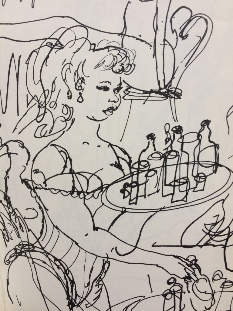 - Used ‘odds and ends’ to create his work. Asked to borrow people’s pencils and used the blank page from books to illustrate on.