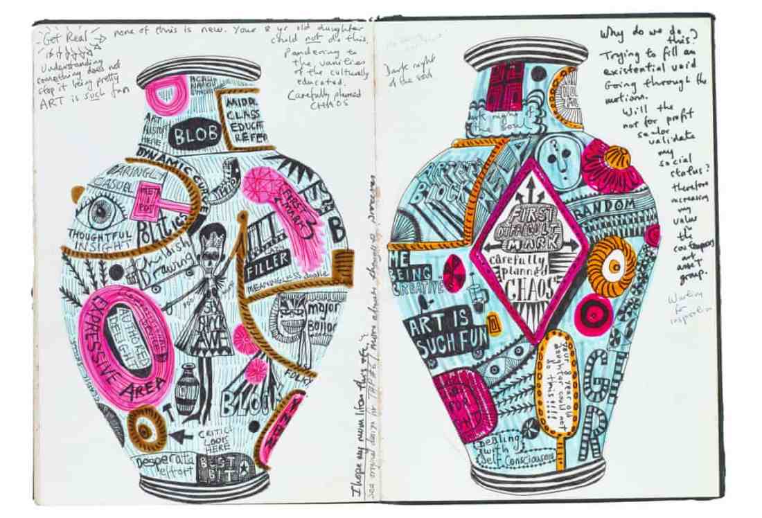 - He adds a mixture of writing and drawing in his sketchbooks.