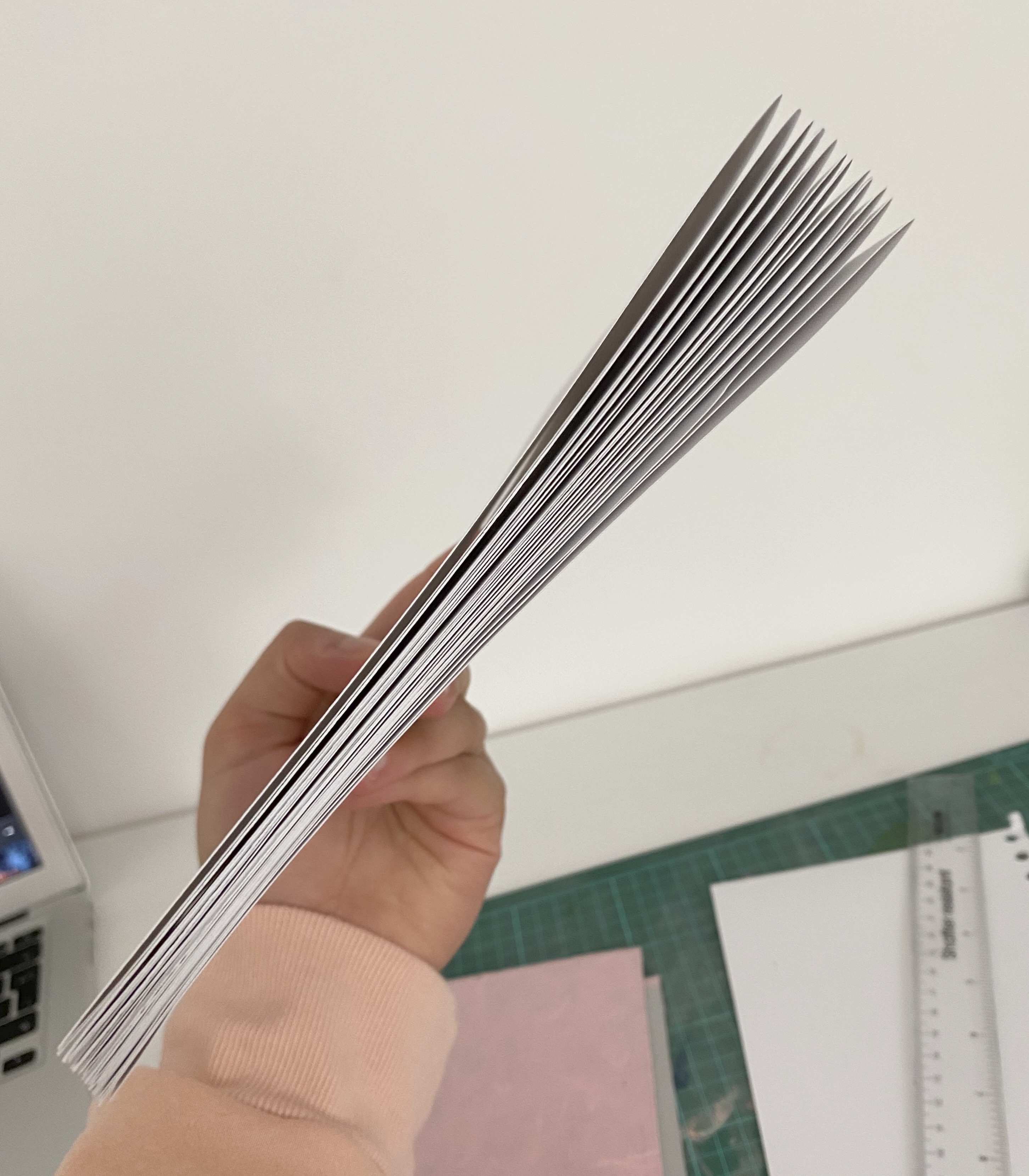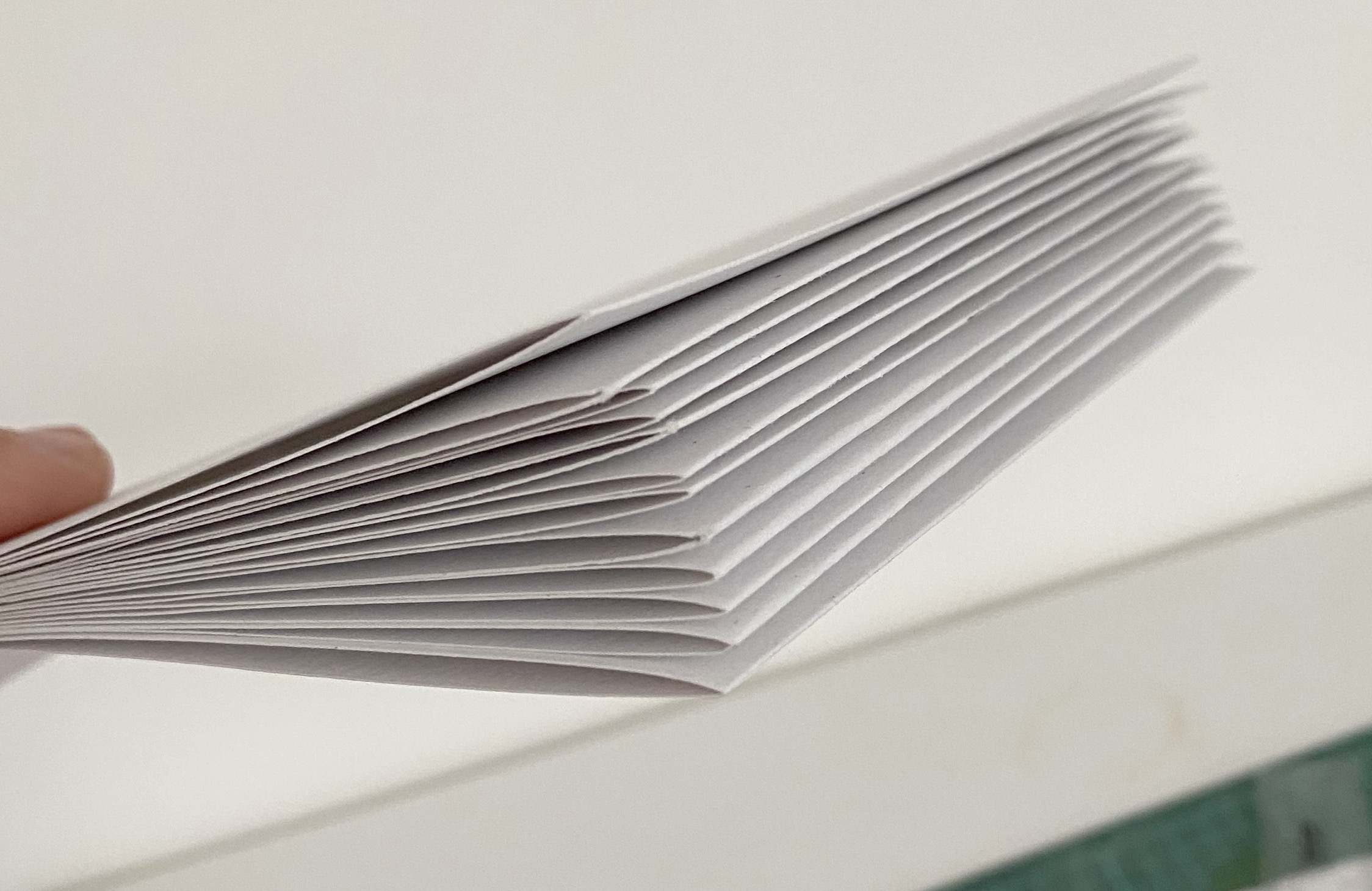 I wanted to try and make my own sketchbook to use for this assignment so that I can record ‘the everyday’ in it. To start I folded and cut up A3 sheets of paper from an existing sketchbook so that I had my pages.