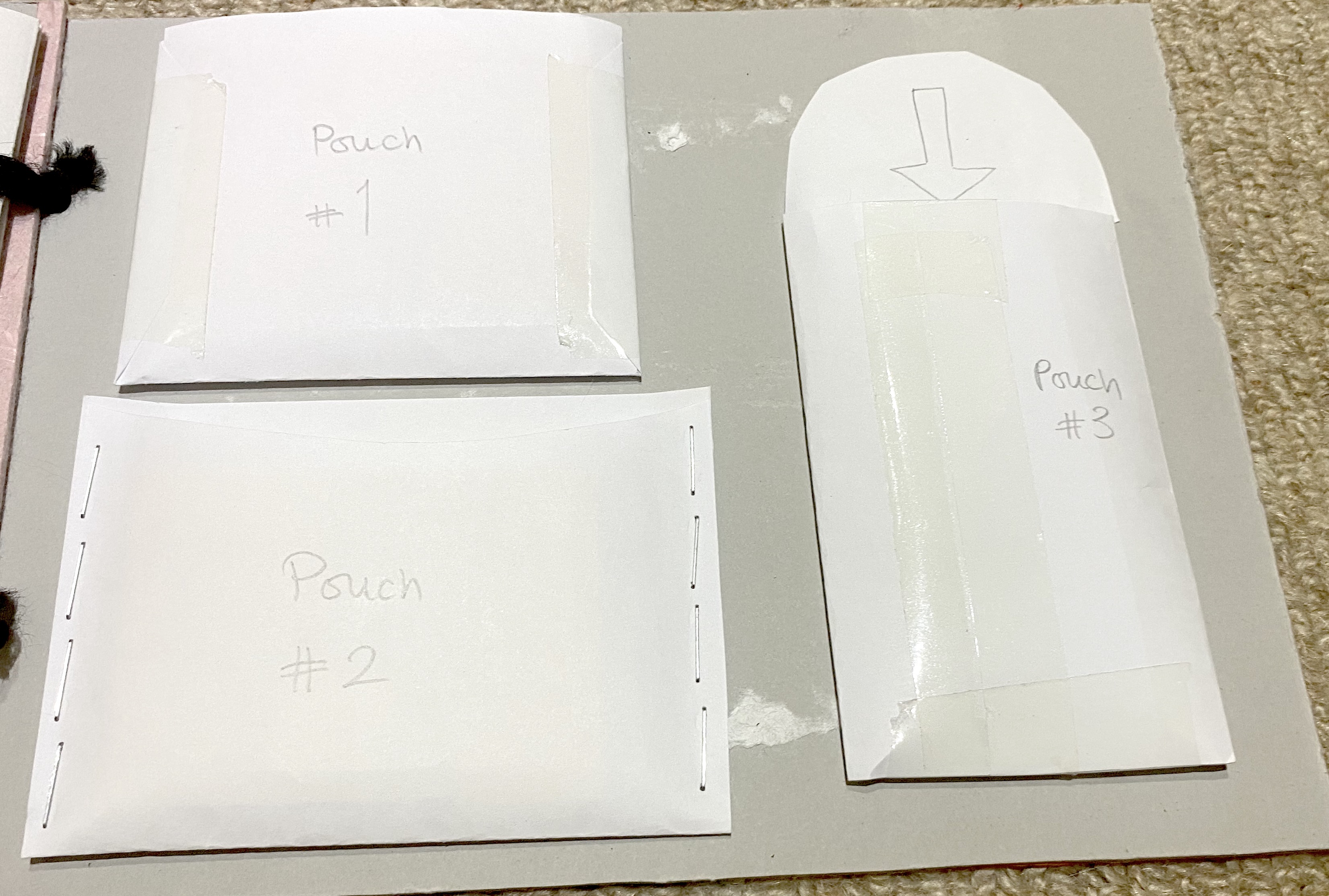 To finish off my sketchbook I have added three different pouches. Within them are my drawings from exercise 1.2″.