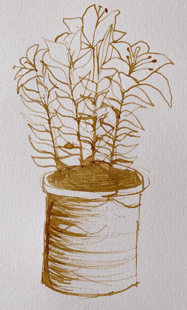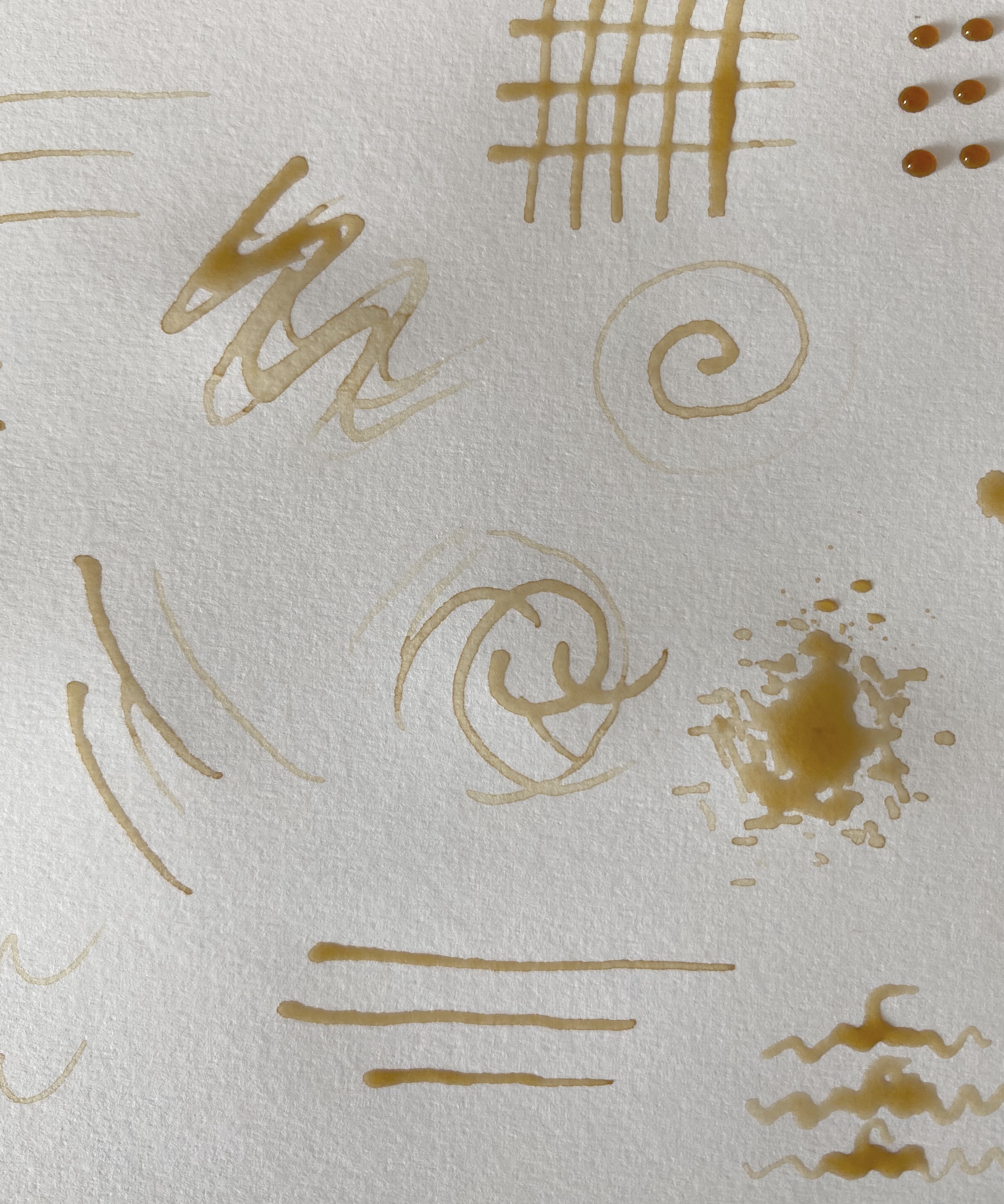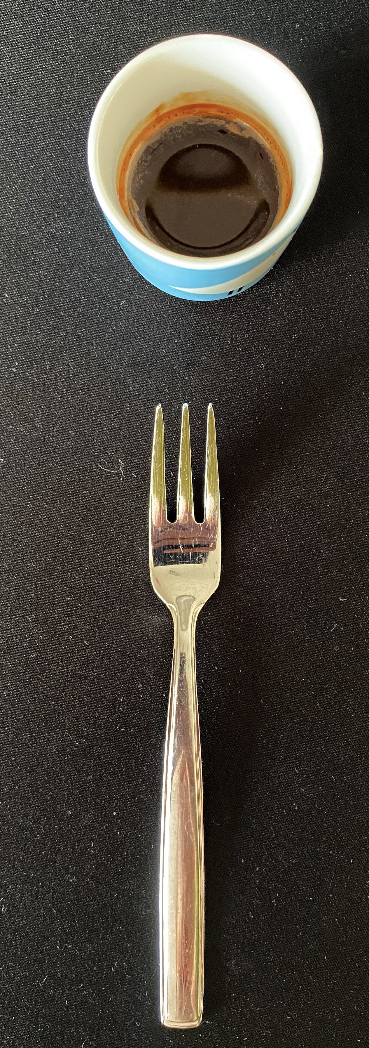 Coffee (using a fork as the tool and the coffee water as an ink):
