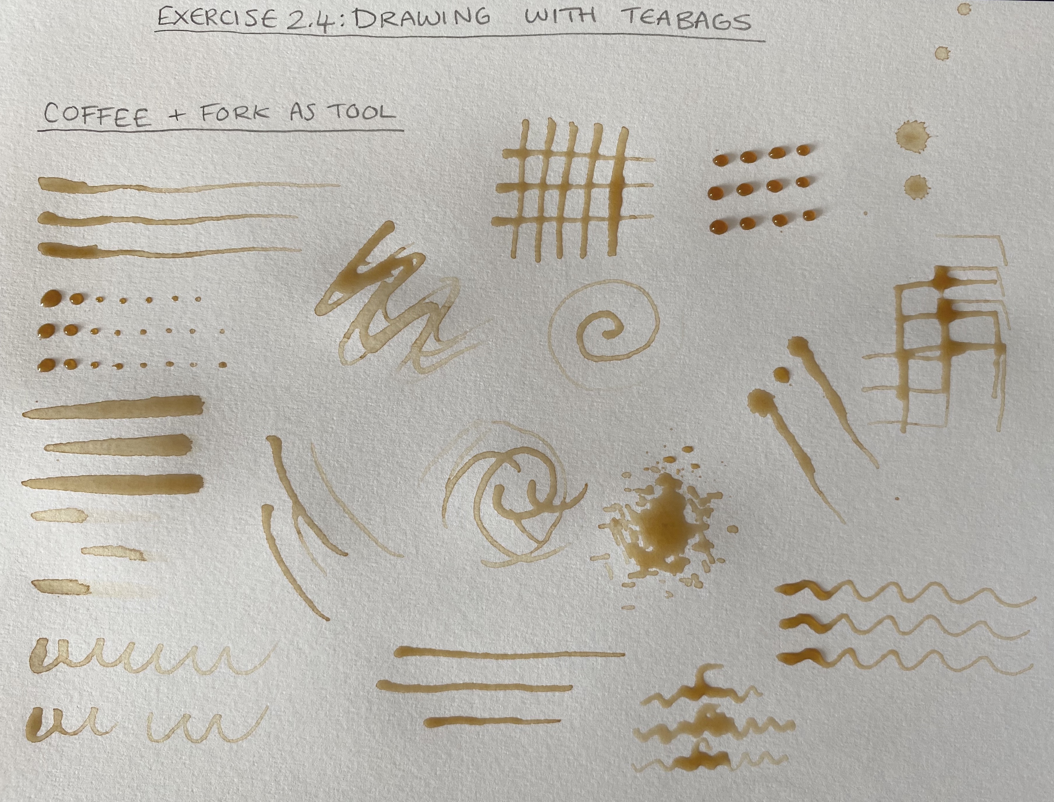 - Coffee (using a fork as the tool and the coffee water as an ink)