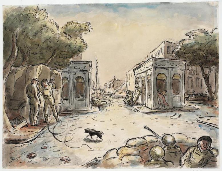 When reading the article about Ardizzone I found it interesting that as an artist who sold 3 children’s books (pre-war) continues his numerous and comical attitude when illustrating war scenes, even to the point of critics saying he was ‘taking the war too lightly’ (Powers, 2017). I find it bazaar that this man was involved in Dunkirk and saw numerous corpses but still was able to keep a cheerful and enthusiastic attitude. When looking at his illustrations for children’s books and comparing them to his reportage illustrations of war, you can see alot of similarities even thought the context is (of course) very different, for instance looking at ‘Baggage to the Enemy’(Ardizzone, 1941) there is alot of colour used and a man is smiling in the lower right corner, he also gives the soldiers a bright rose complexion which he does alot in his children’s book illustrations for instance in ‘Tim all Alone’ (Ardizzone, 1936).