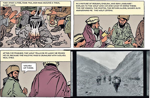The last article shows a ‘three-way collaboration between the late French photographer Didier Lefèvre, graphic novelist Emmanuel Guibert and graphic designer Frédéric Lemercier’ (Poynor, 2009). This for me seems like the most interesting out of all three articles as the use of media is so diverse, there are no boundaries! Is nice to see photography, graphic design, a novel and illustration in the same space. I think the use of photography is so important when documenting something as powerful and traumatic as war, as you cannot hide anything in the image nor can the image be misleading, with illustration you can choose what you want to depict or not, with photography it is fully uncensored. The mixture all on one page is so interesting as seen in Le Photographe (Guibert, Lefèvre and Lemercier, 2010)