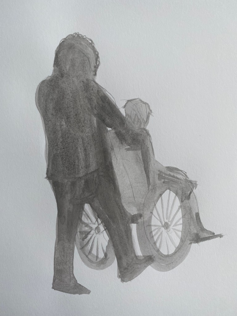 I decided to try and use a different medium for these pieces as I thought it would be too similar to my single figure drawings of my mum that I did in the previous exercise.