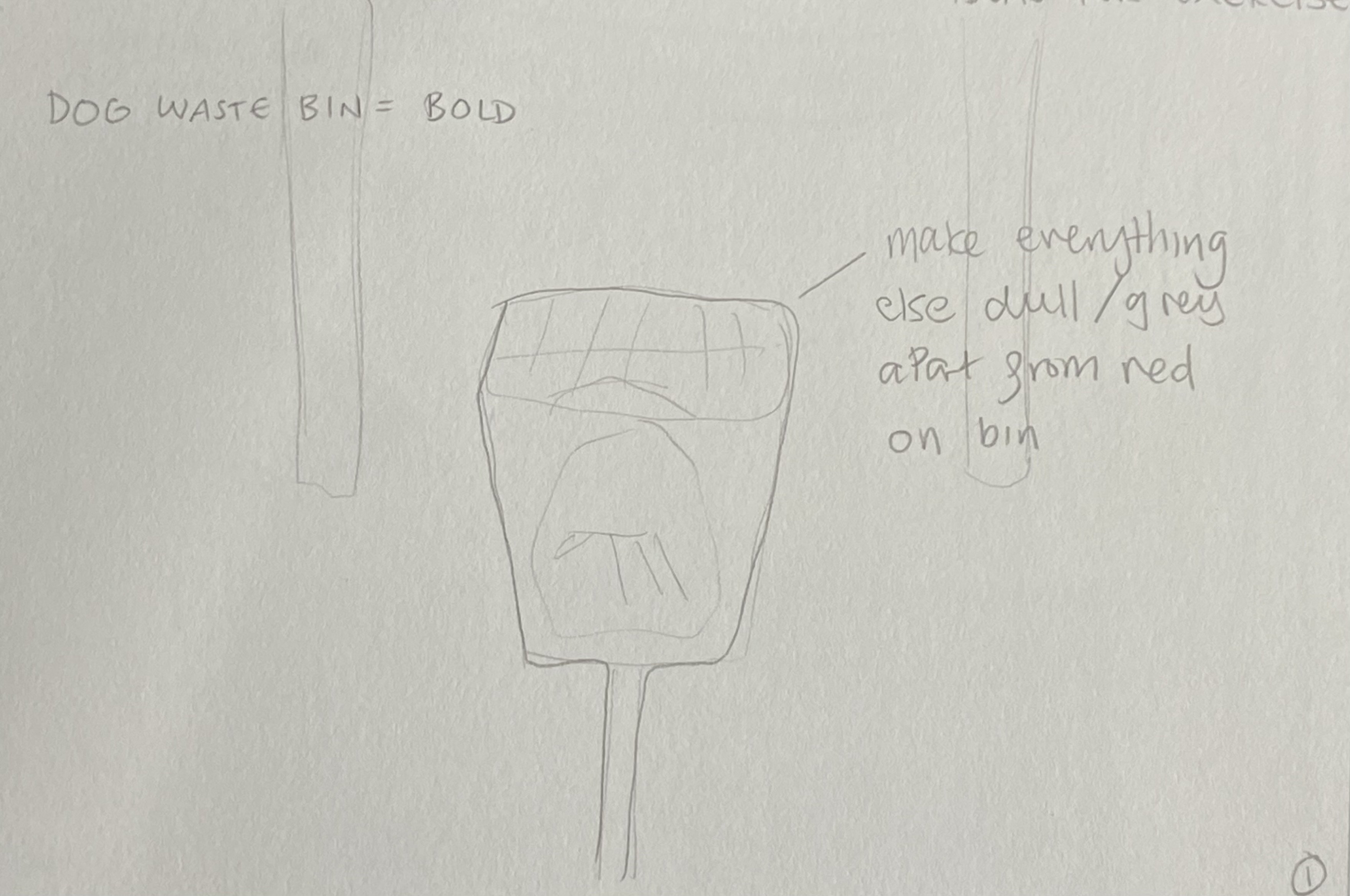 I chose the word Bold for Dog Waste Bin as in comparison to the green grass and brown earth the colour is very dramatic and vibrant… or bold!