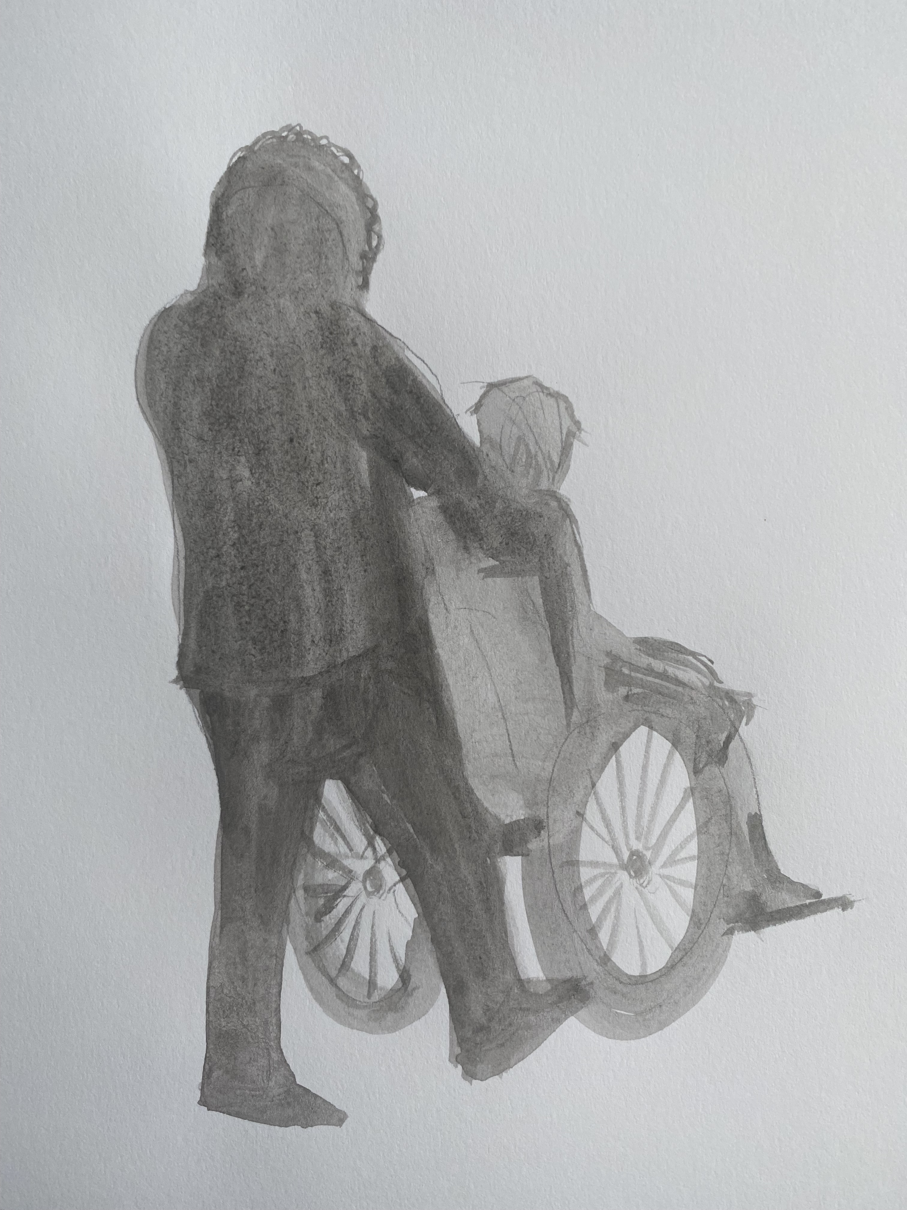 Image 2: (from Exercise 3.2 – working with external visual impetus – people – single figure) My 3 chosen words from SCAMPER: Eliminate / Reverse / Modify