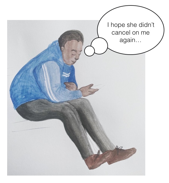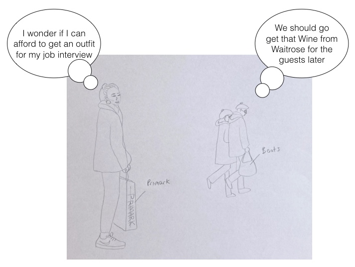 Add speech bubbles as a way of showing what the characters ‘may be thinking’: