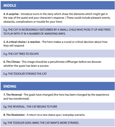 Here is a simplified breakdown of this structure with a very basic ‘cat sat on the mat’ story added for example: