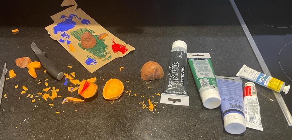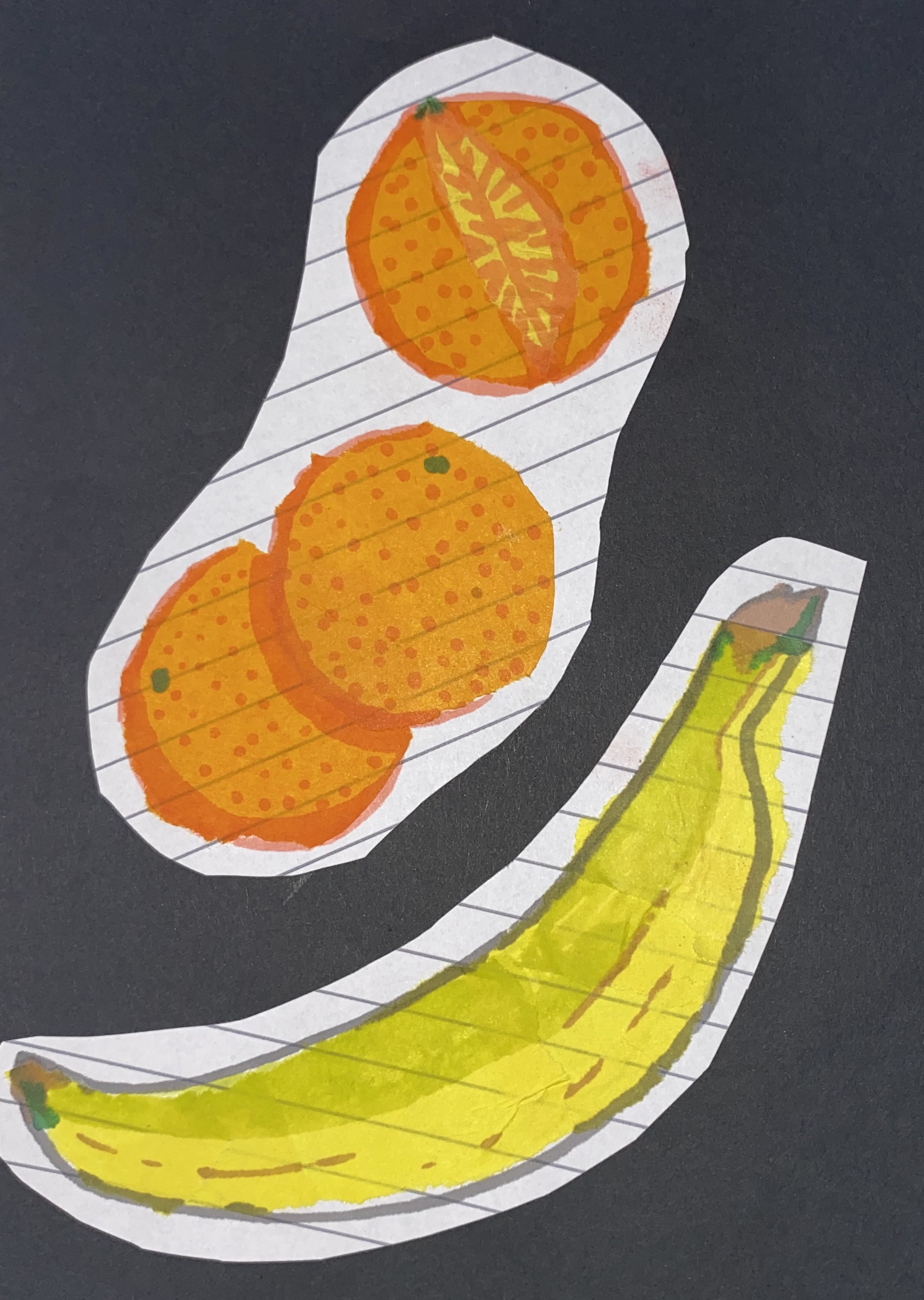 As you can see I already made a start on creating some collages of fruit and vegetables using tissue paper, I will add to these later.