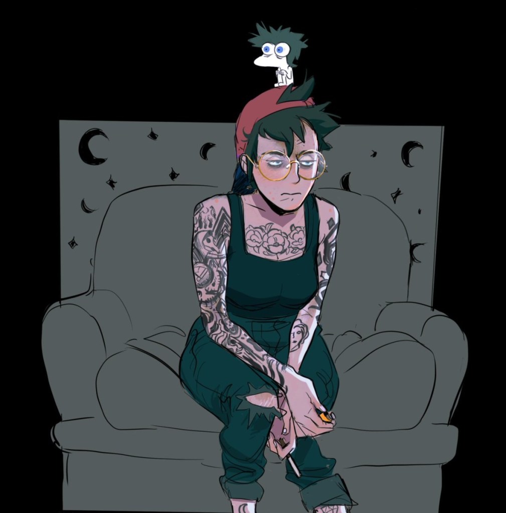 Artist 1 (Rebecca) and Artist 2 (Dana) have quite a lot of similarities and I think this is mostly down to their age. They are both in their early 30’s and draw mostly digitally in comparison to Art 3 (Hayao) who draws more traditionally, sketching out his storyboards and character designs using fine liners on paper. I chose these three artists as they all mean something to me. I have either watched or am watching their films/series now and have followed Rebecca and Dana on Twitter and Instagram to follow their recent works as well as looking back as their old work. I enjoy looking at the similarities between the cartoonists professional work (when it gets used on tv) and their own personal work. For instance Dana (Artist 2) is working for Disney creating a weird but PG rated series that kids can watch but her work on Instagram or Twitter is either really grotesque or personal (about her mental health etc) most of her personal work she marks with TW which means ‘trigger warning’ for anyone who gets triggered by seeing blood or gore in illustrations. I think Dana’s self portrait really resembles her as well as her personality. I like the fact that she uses a little creature in most of her personal work (the one shown on her head in the illustrations above) and it is a visual representation of Dana as well, she has also created a few comic strips using this small creature as well, including a comic that describes what Dana has to go through each night with her insomnia. Rebecca normally captures her current style or how she wants to be represented (e.g. if her haircut changes or how she is feeling that day). There’s also a lot less detail in Rebecca’s self portrait in comparison to Dana’s, she uses a much thicker pen when drawing herself digitally. She also is known for her sketchy and somewhat ‘messy’ colouring in of her drawings. I think she thinks as long as the colours are there is doesn’t matter if they aren’t within the lines. Finally my third artist Hayao has the most simplistic self portrait of all three artists. He jots down an image of himself drawing and then redraws himself as a pig underneath, maybe suggesting two different realities where Hayao is mirroring a different ‘pig’ Hayao getting stressed about making a film. Another thing to consider is that one of the Studio Ghibli film called ‘Porko Rosso’ has a main character who is a pig-man so maybe Hayao was sketching this character out?