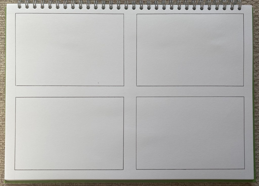 I will divide an A3 page into 4 equal-sized landscape panels:
