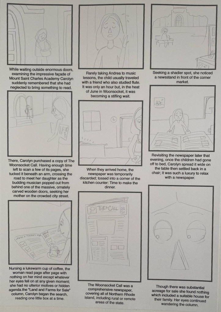 I have now selected the wording I want to keep and add as text to the panels, I now need to create my thumbnail sketches to show how my panels/text will look.