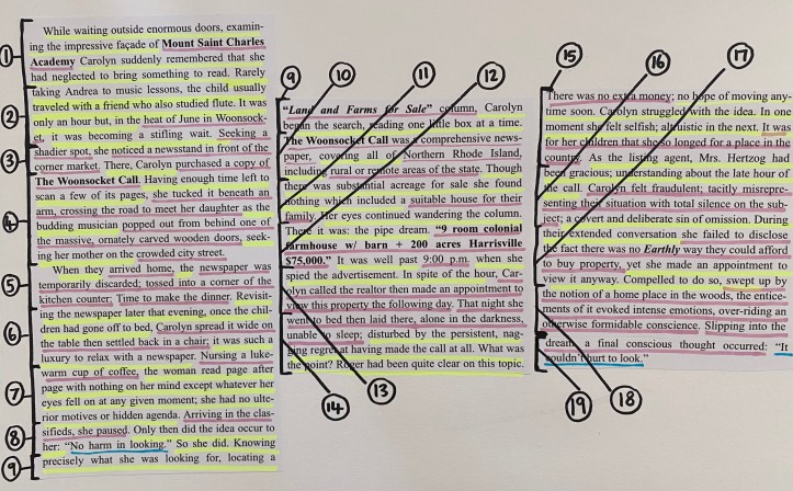 - Yellow = Movements and descriptions of objects and backgrounds/foregrounds