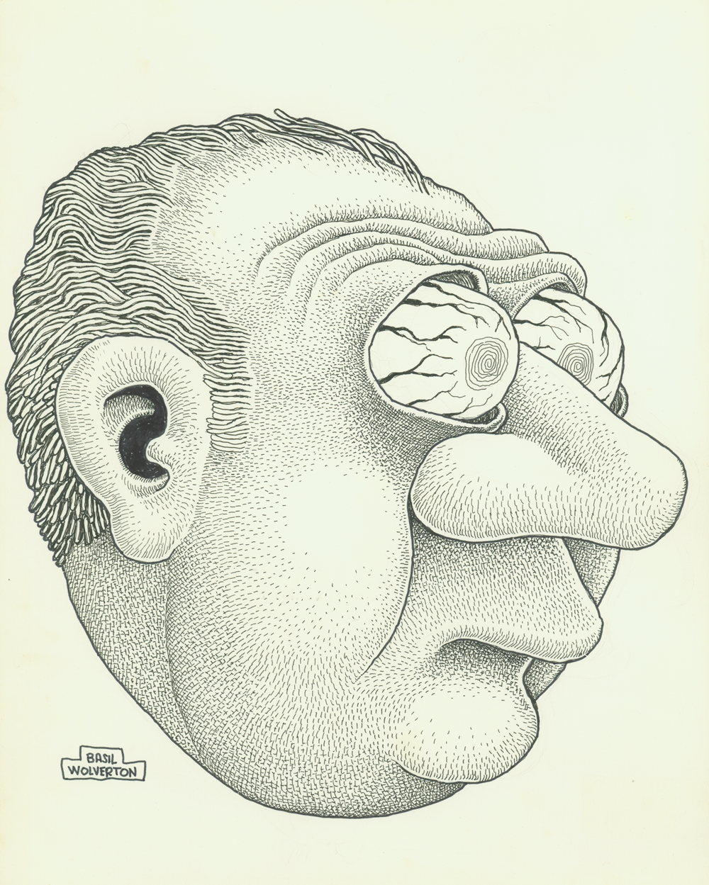Basil Wolverton, born July 9, 1909 – December 31, 1978, was an American cartoonist and illustrator known for his intricately detailed grotesques of bizarre or misshapen people. His many publishers included Marvel Comics and Mad magazine.