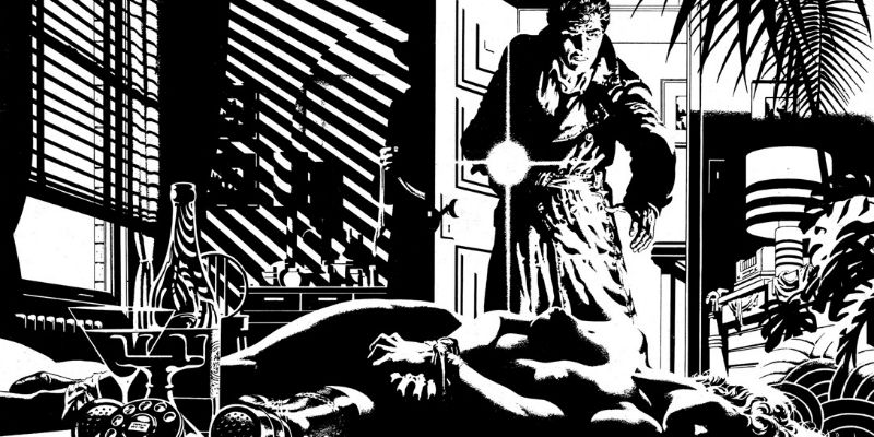 Miller’s work is very similiar in style to Steranko but still has his own touch to it. I like both of their works but find them similar at the same time. Miller has created and produced some of my favorite comic inspired fims like Sin City and The Dark Knight Returns. When watching those films you can really see where it was inspired by comics and the scenes could easily be turned back into comics panel by panel. His use of colour is facinating, for instance in Sin City he uses yellow for the blood of Ethan Roark or ‘The Yellow Bastard’, seeing this colour as blood intregues me a lot, it’s very unique.