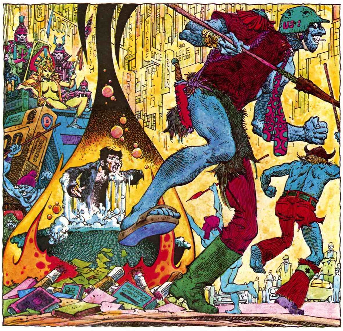 Wolverton’s work is unique in style. You can see he really likes including rolls of skin and other grotesque elements to his work. His work reminds me of an artist from the 1980’s called Art Spiegelman. My Mum told me about him, he produced illsutrations for a parody of ‘Cabage Patch Dolls’ called ‘Garbage Pail Kids’, obviously the art style is different but the grotesqueness of it feels similar.