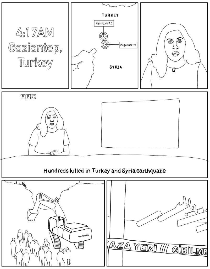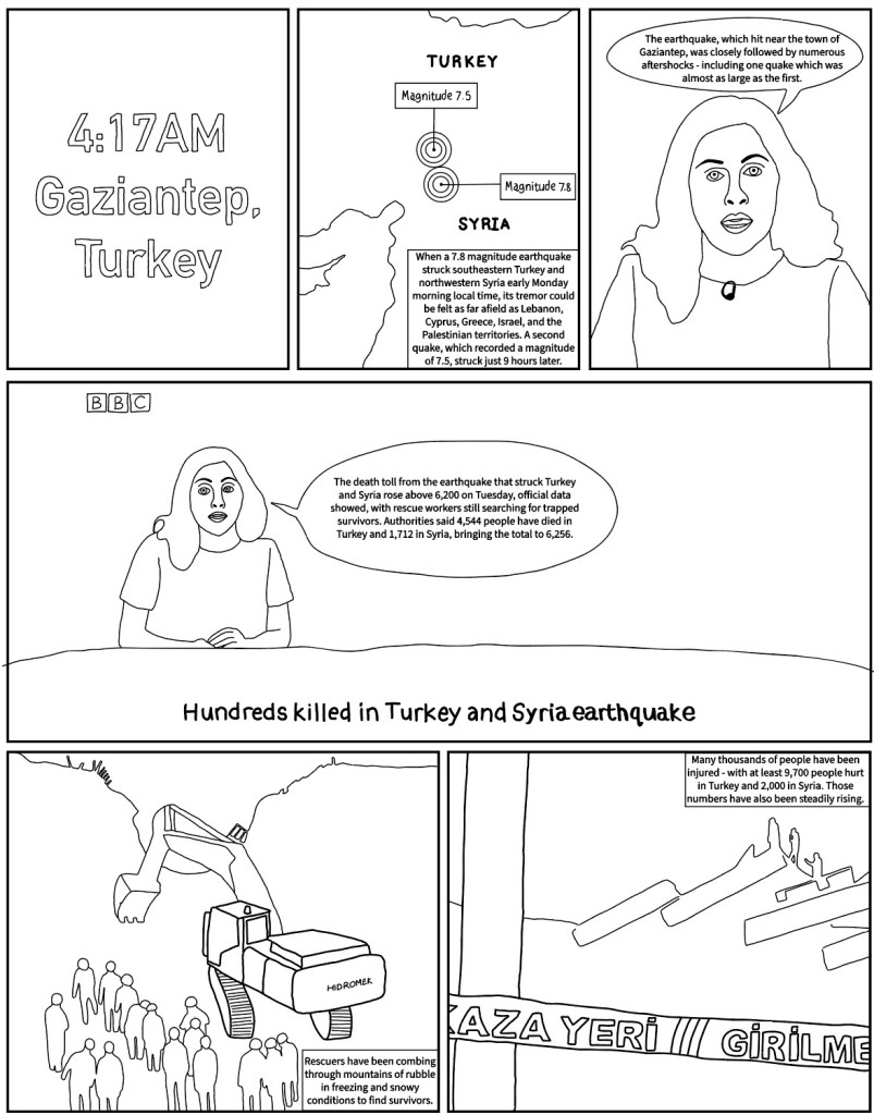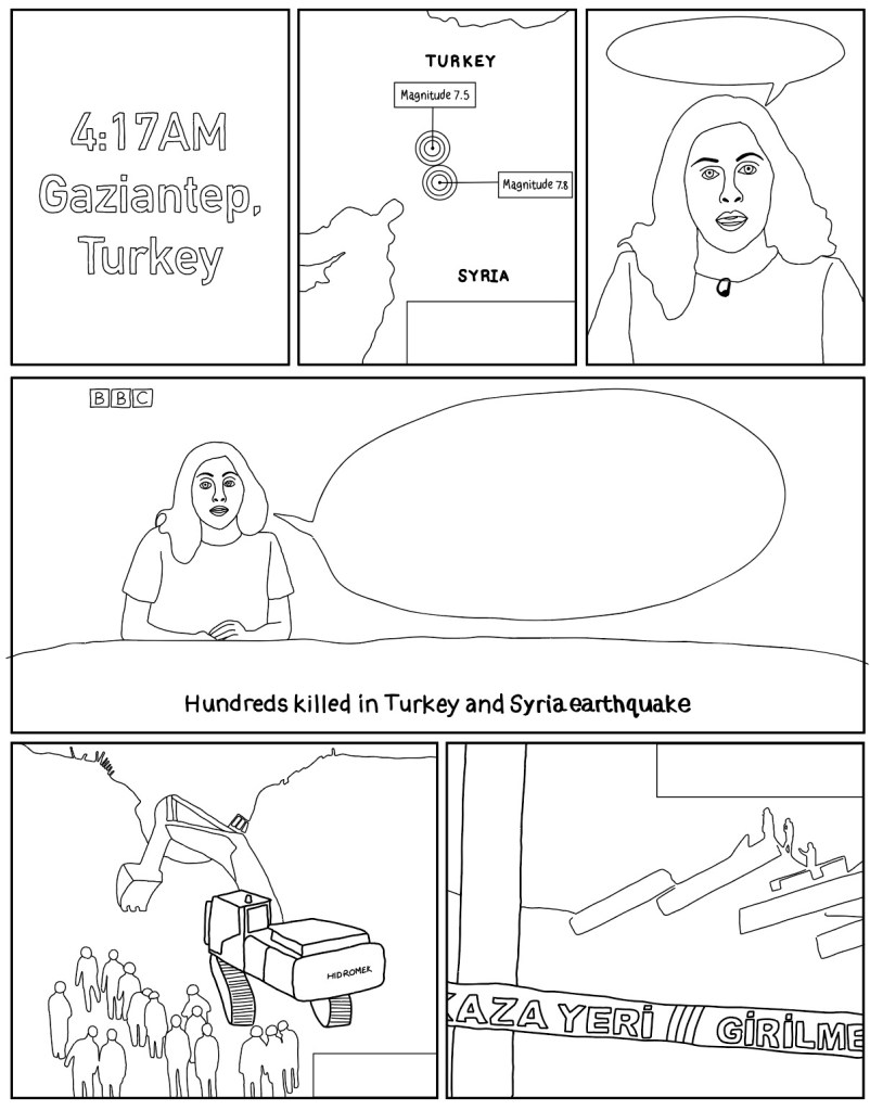 For this exercise, I need to produce a two-page comic narrative of an event. The size of the panels, grid format, and materials are entirely up to you. It could be a black and white strip, full-colour, a combination of both of these approaches, or even including collage elements.