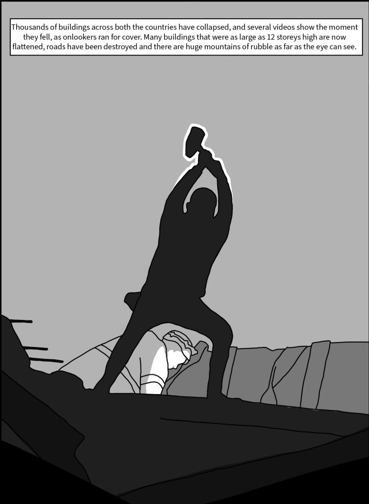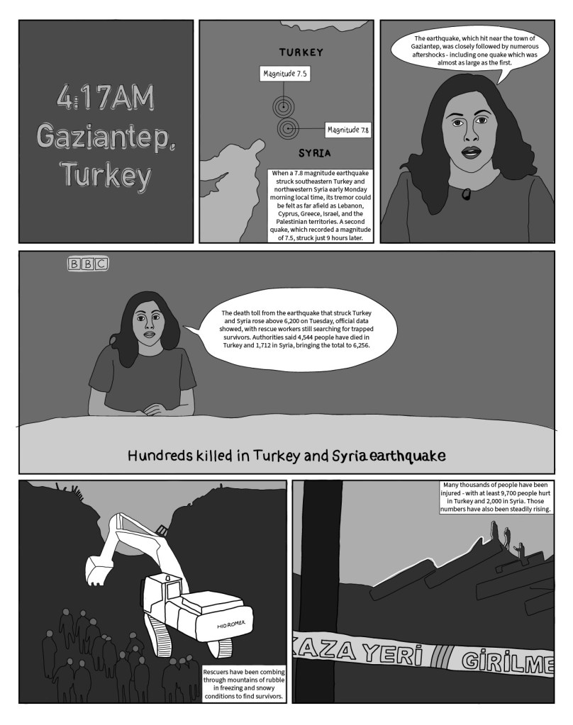 I am very happy with the way these 2 pages turned out. I decided on using different sized panels to make the illustrations stand out. For page 1 I decided on 6 panels which are different sizes and on page 2 I wanted there to be a bold full page illustration as you would have in a comic book or graphic novel. I think from the images and text within these pages you can understand what the news story is about. I chose to do this exercise in monochrome as I have done in a few previous exercises. I really enjoy using different greys and still being able to understand what I am trying to express. I think what really made this was page 2 where the light from the man using an angle grinder behind the man with the sledge hammer.