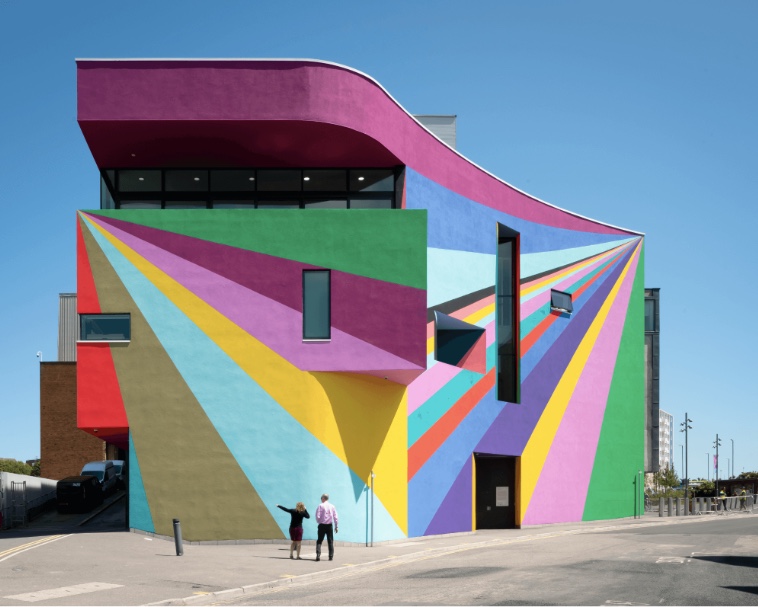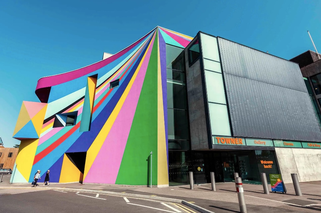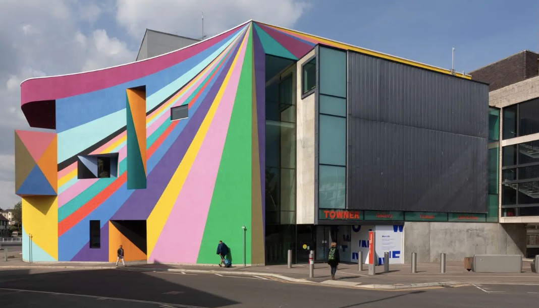 Mural on the new Towner Gallery – https://townereastbourne.org.uk/whats-on/public-art/lothar-gotz-dance-diagonal