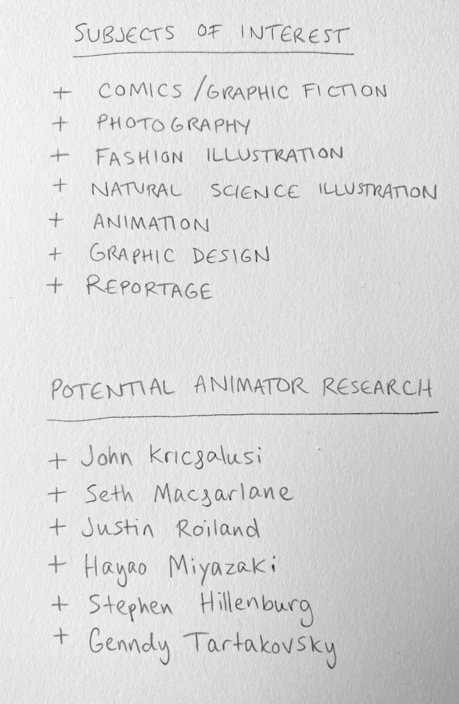 My Critical Review Subjects of interest, animator research, and critical review questions: