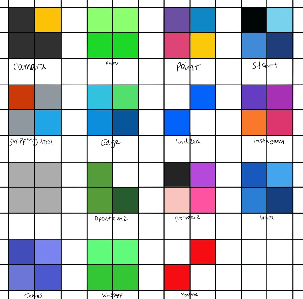 This exercise was interesting and for me it was more to do with understanding colours more than pixels. It’s interesting to see how many colours make up each logo, some only have two and others have multiple. I didn’t even know that some colours existed within some logos. I think all of the pixelated images of the logos can be easily identified but the 4-pixel images above are a lot harder to see, for instance Word could be mistaken for Outlook or even Teams at a glance? I created the images using a grid format on Procreate.