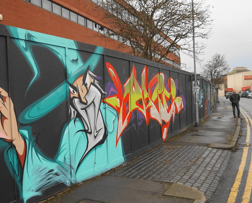 For this research task I need to identify examples of street art on the walls near me, I decided on researching graffiti around me using Google. This work interacts with the environment in different ways, some are aesthetically pleasing and others are just a waste of wall space (vandalism).