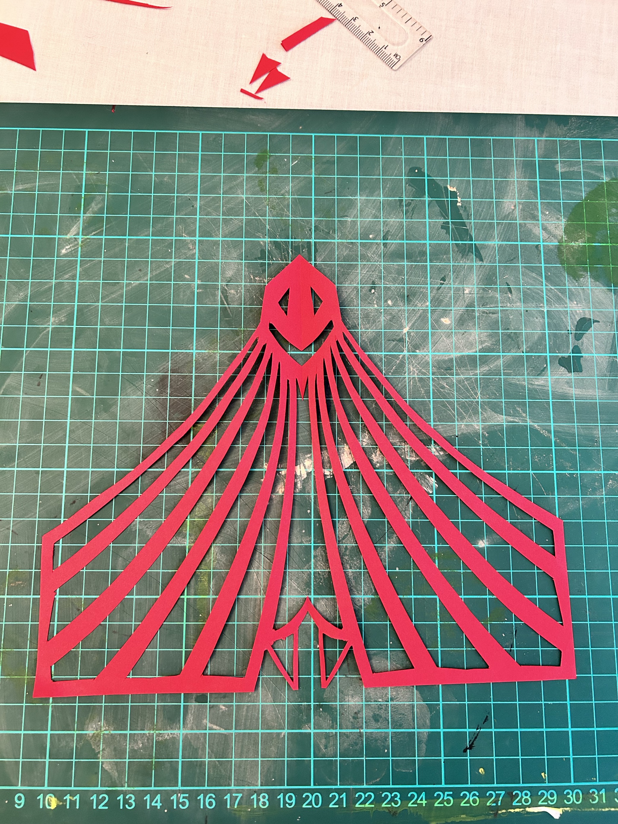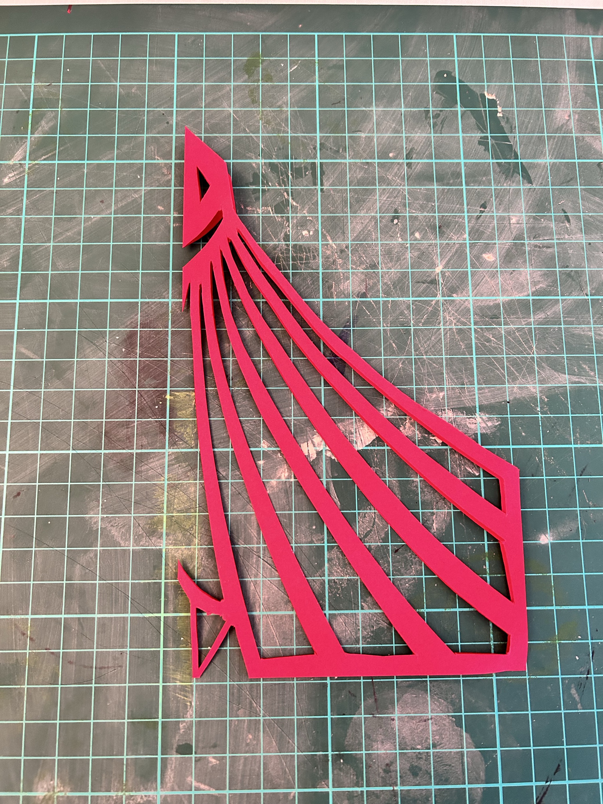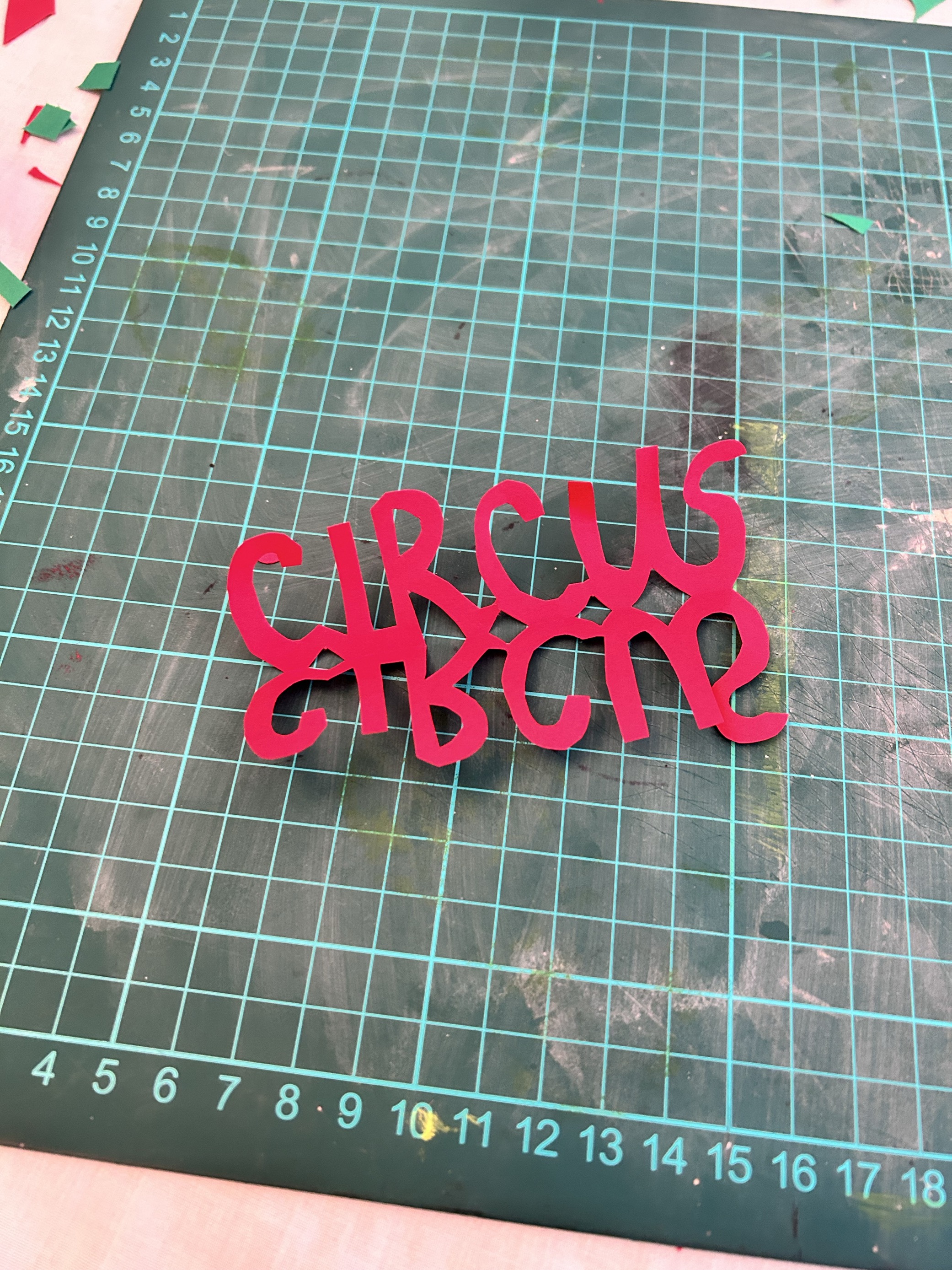 I used a scalpel for this exercise primarily but used scissors for some of the text as there were many curves. I think my final design stands out and would catch peoples eye. For the text/typography I wanted to focus on the ‘illusion’/mirrors part of a circus so for this I cut out the text with a mirrored version attached to it. I then overlapped the work circus on top of Eastbourne, this way the colours green and red would clash making it seem confusing and give a ‘dizzy’ 3D sort of effect. For the jester and the tent I folded my paper over so I cut out one side only and mirrored the design when I unfolded the paper. I showed the jester juggling some balls as well to really define what the image is trying to show. Looking back I suppose the tent could be mistaken for a jail cell with the jester behind? The only downside to this is that because of where I put the tent doors, it looks like the jester is wearing a bra!