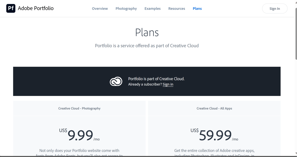 Adobe Portfolio – Unlimited Portfolio as part of Creative Cloud – Pricey!