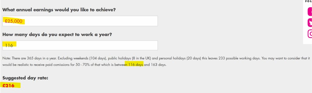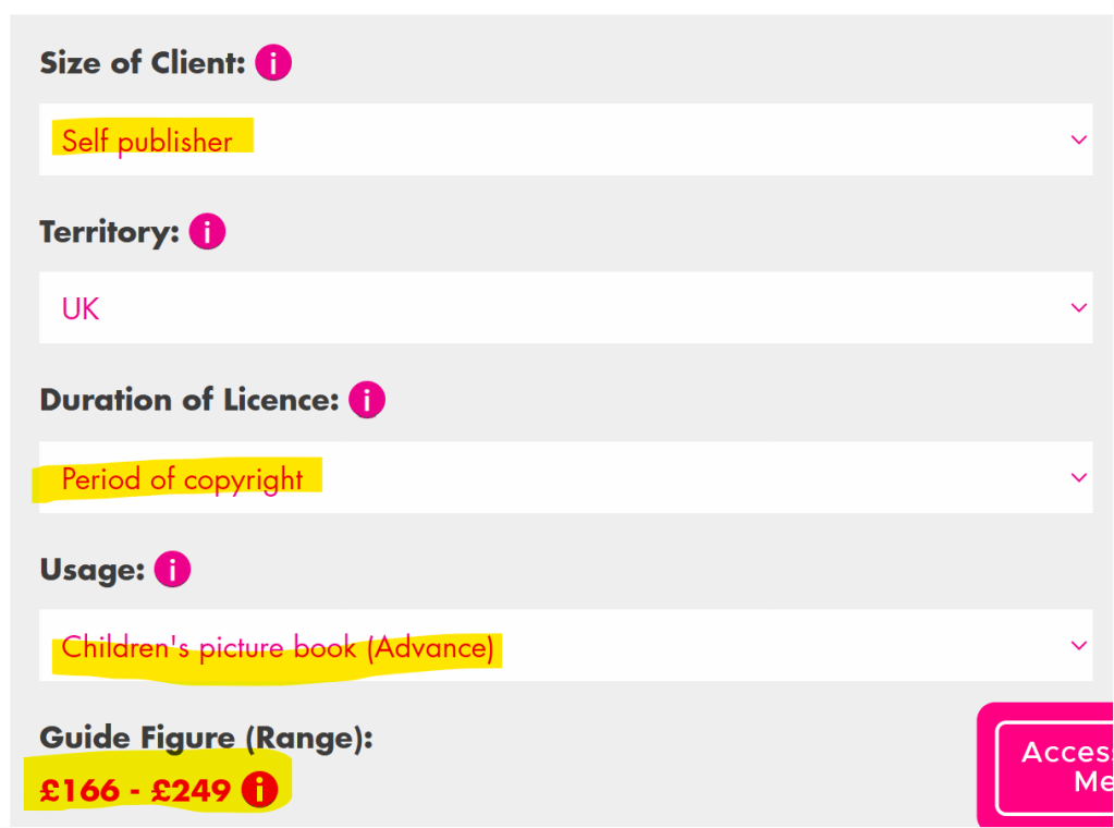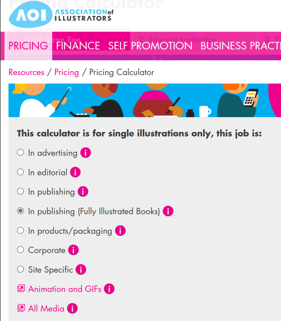 This day rate seems quite high for daily illustrating of a children’s book and I can imagine it would take less than 116 days to finish. Looking at this I think I need to look at how to use the pricing calculator correctly. I will continue researching it as I am very new to it but I think it will take me a bit of time to get my head around.