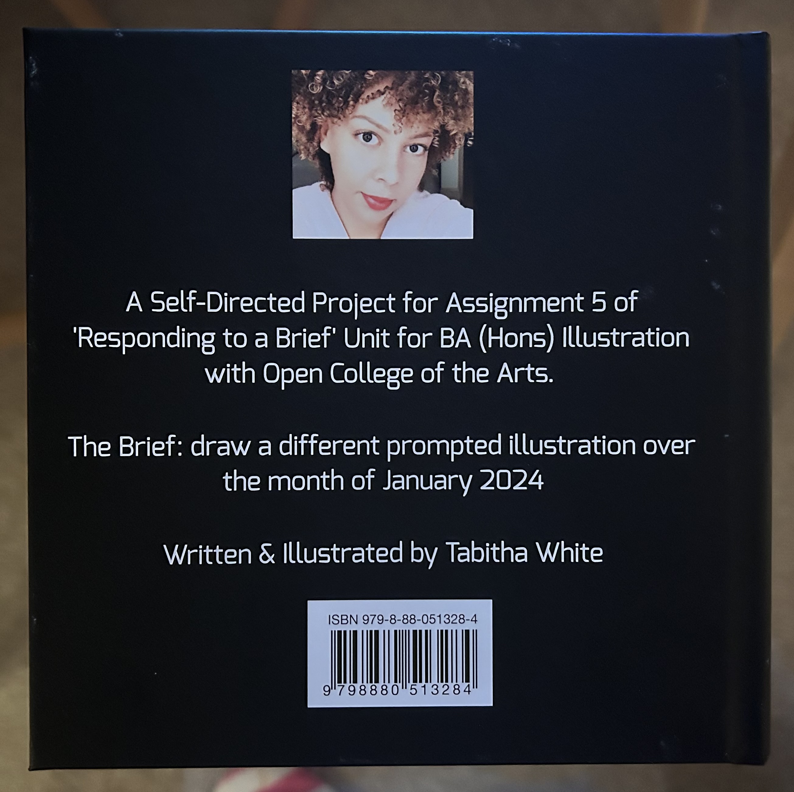 I am really happy with the way the way that the book turned out, it looks professional and I’m glad I actually have a 3D final outcome for once! I’m glad I paid for the matte paper also as it compliments the illustrations. I feel as though I responded to my own brief well. I tried hard on my illustrations and also listened to my tutors guidance of trying out different digital brushes and effects which I have included on many of the 31 illustrations. I stuck to the mandatories and formatting that I wrote as part of the brief. Some illustrations are stronger than others and I can see how this happened, I think some ideas were more exciting so I spent more time on them. I also used different art styles depending on what I saw in my head for ideas. It’s exciting for me to have my own ISBN, as it feels more professional.