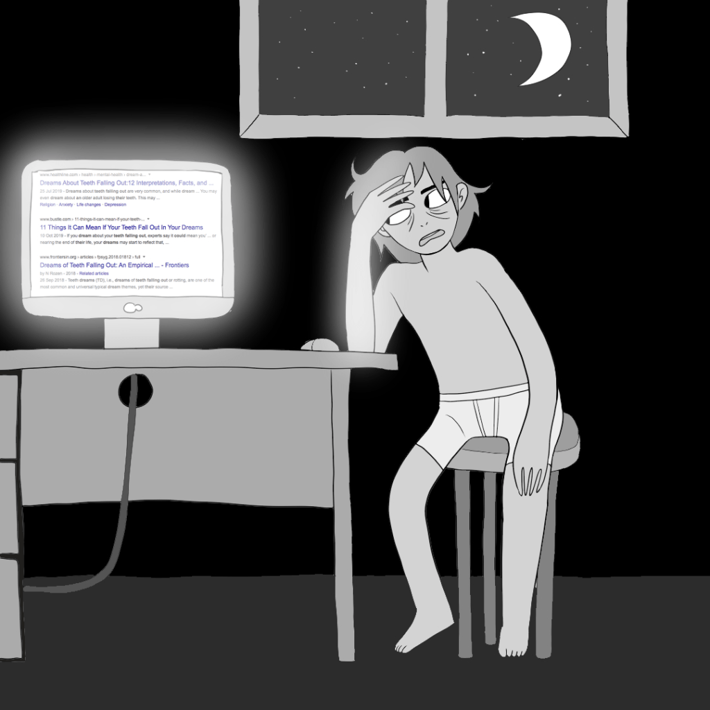 I wanted to show him awake after having ‘pandemic dreams’ and trying to research/figure out why he keeps dreaming about his ‘teeth falling out’.