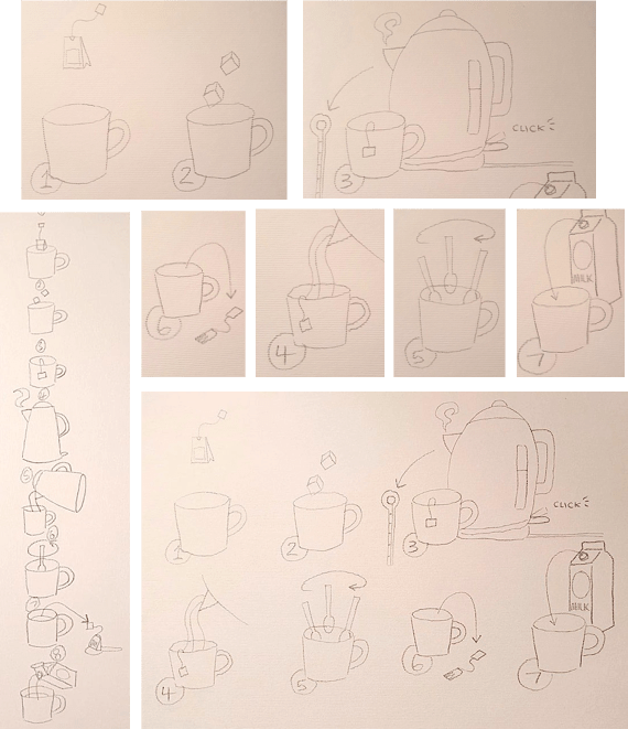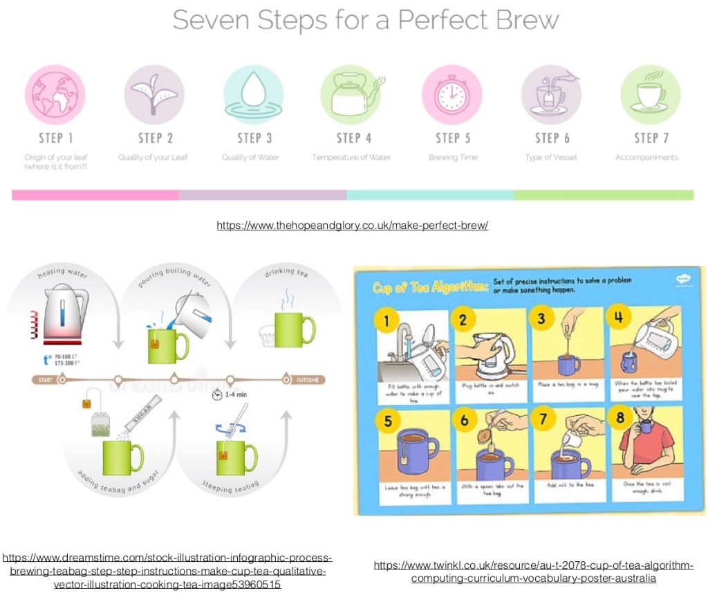 ‘How to make a cup of tea’ related diagrammatic illustrations found online: