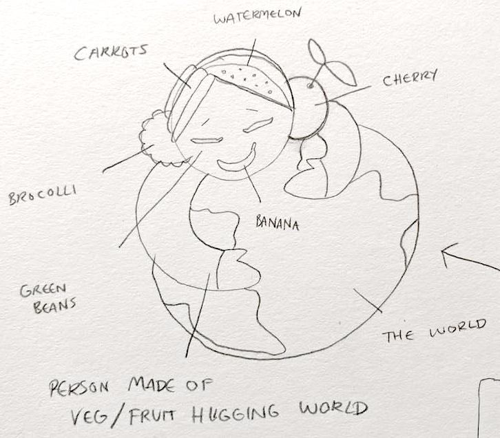 I wanted to focus my thumbnail designs primarily on the topic of ‘loving the planet by going plant-based’ so I knew that I had to incorporate vegetables, the planet and eating into the designs. I like all my thumbnail designs but I thought that most of them were quite basic and have ‘already been done’ so I decided to focus on the thumbnail where the girl (made of fruit and veg) is hugging the world as I haven’t seen this design before. Also it would be relevant to the title and text of the article.