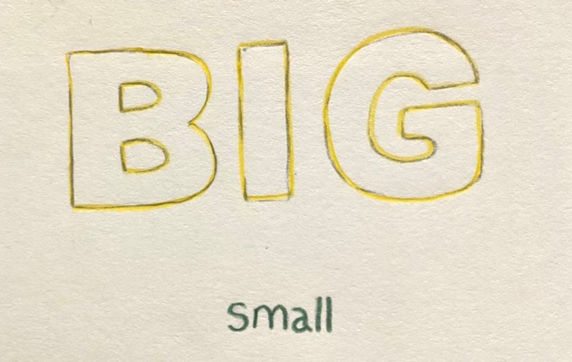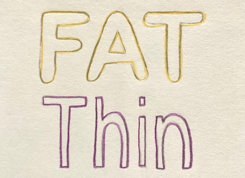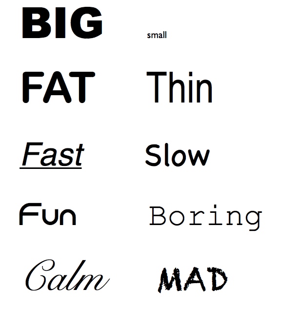 This project asked for me to design a number of words in a way that is descriptive. I enjoyed this project as it really made me think about how I wanted to design the words in a visual way. I had to go through a process of firstly writing the words down in a visually descriptive way. Next I had to find suitable fonts on my computer (Apple pages) document program and print them off,I then traced the typeface in pencil using colours that communicate its meaning. I found this part tricky as I had to really think about what colour matched the meaning of the word. For ‘big’ I chose yellow for the sun, for ‘small’ I chose green for a blade of grass, for ‘fat’ I chose a yellow/orange colour for fat in the body, for ‘thin’ I chose purple for the colour of food that someone wouldn’t want to eat so they’d become skinny, for ‘fast’ I chose blue for the blue skies in which an aircraft flies, for ‘slow’ I chose grey for grey clouds/smoke that pass slowly, for ‘fun’ I chose purple/pink colour for balloons, cakes and celebration items, for ‘boring’ I chose brown as it’s a horrible colour to write with, for ‘calm’ I chose green for nature and for ‘mad’ I chose red for obvious reasons (seeing red). The next part of my process was to create mini mood boards for each of the words, I found this part to be the most interesting and challenging part of the project as (yet again) like it did in the previous part I had to really think about what I was I wanted to express for each word. Finally I had to draw out each of my words using the colours, line quality and textures that I created in the previous part. Personally I think that all my outcomes are good for this project, my most favourite being the word ‘fat’ as I made the word out of fat molecules!