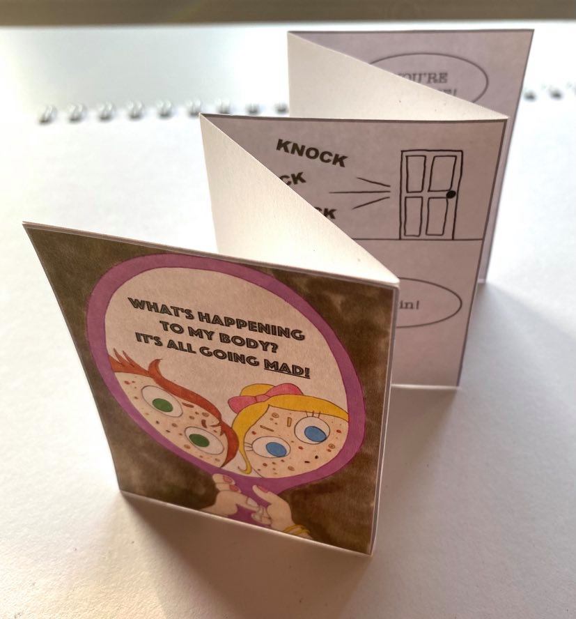 If I was to go back and change anything about my final design, it would be to colour in my cover illustration using my computer program so that the illustration was more professionally coloured in. I wouldn’t change the inside of the leaflet (the strip) through because I feel that it makes sense to leave it in black and white as most simple comic strips are, also it blends in with the fact that “all kids like colour” and these people aren’t kids anymore, there pre-teens!