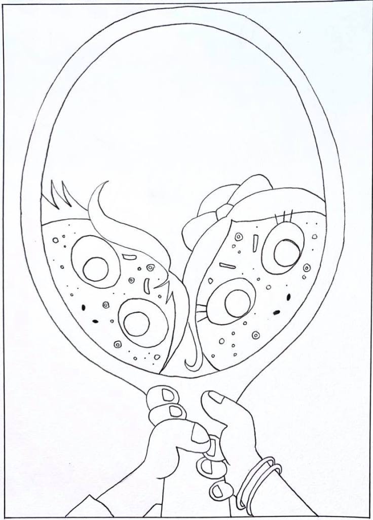Out of my two final illustrations for this project this one has to be my favourite, actually I think it’s one of my favourite outcomes out of the course! I am really happy with how this turned out as it’s easy to see what is going on in the image and I like that fact that I used a better colour scheme in comparison to the other outcome (butterfly). If I was to change anything it would be to add background so that it is easier to see that he is looking in a mirror. I think the fact that I chose this format really helps the overall feeling of the image and there isn’t any empty space also unlike the other (butterfly) illustration.
