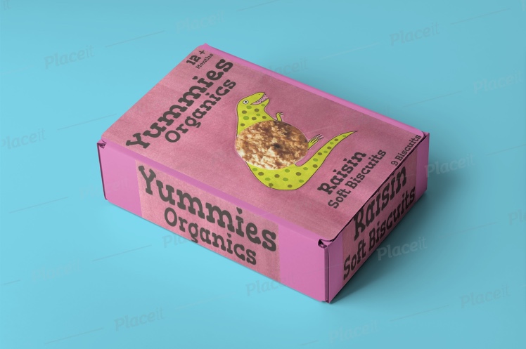 Overall I am satisfied with my designs for all three biscuit packages. I think I have covered the brief well, I have made it so that the characters on the front packaging interact with the biscuits, I made it so that the abdomen of all three characters are the actual biscuit. I enjoyed the developmental process of this exercise, I found it interesting to see my design without the colours or illustrations added to it. I used the website ‘Place-it’ for my mock-up designs and I found it really helpful to add a similar colour to the mock-up boxes as well so that I could see what the product would look like in 3D.